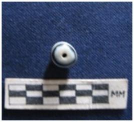 | Description / विवरण | Bead of spherical shape. It is blue in color with white banded. |