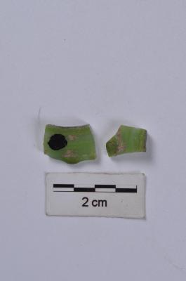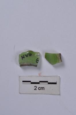 | Description / विवरण | Two fragments of green colored glass bangle, smooth shiny surface. |