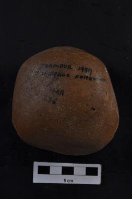| Description / विवरण | Pebble used as hammer stone, uneven shape, smooth surface. |