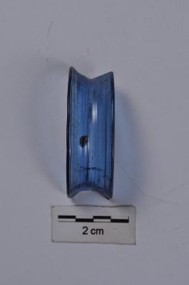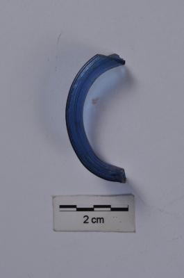 | Description / विवरण | A fragment of blue colored glass bangle, concave cross-section, translucent, smooth shiny surface. |