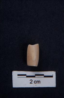 | Description / विवरण | Barrel shaped shell bead, circular cross-section, smooth polished surface, with perforation. |