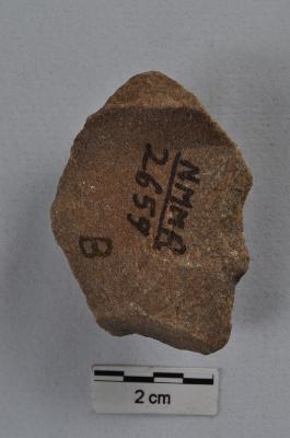 | Description / विवरण | Flake, two another flake scars on dorsal surface. |