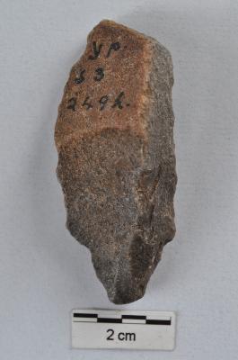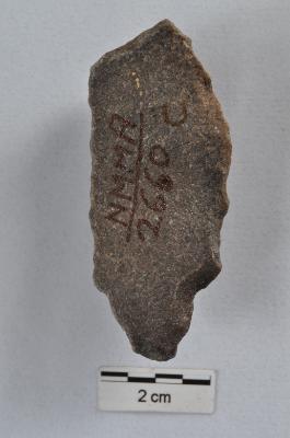 | Description / विवरण | Long flake, crested ridge on dorsal surface, cortex visible on dorsal surface, pointed distal end, triangular cross-section. |