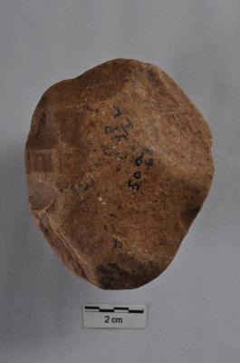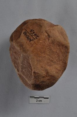 | Description / विवरण | Core, round, few flaking on surface, cortex visible on surface. |