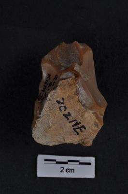 | Description / विवरण | Core, cortex visible on ventral surface, few flake scars on dorsal surface. |