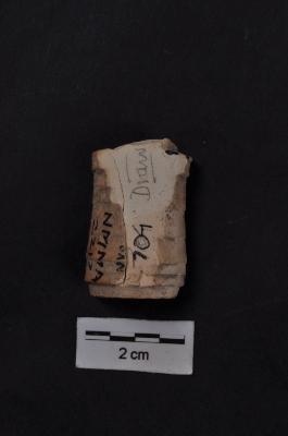 | Description / विवरण | Fragment of a hollow cylinder of ivory with outlines of bangles marked on it smaller in size possibly for rings. |