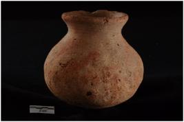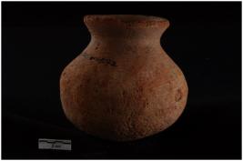 | Description / विवरण | Miniature globular pot, without curved rim, medium coarse fabric, untreated surface, well fired, red in colour. |