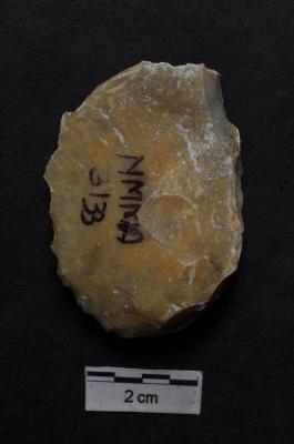 | Description / विवरण | Scraper, oval shape, retouches along the periphery. |