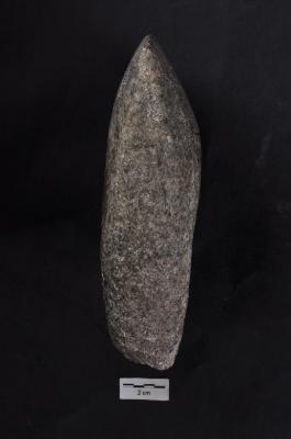| Description / विवरण | Polished Stone Axe, flat convex working edge with pointed butt end. |
