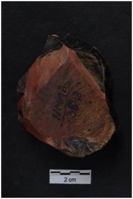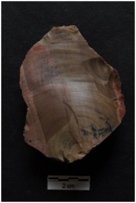 | Description / विवरण | Utilized Flake, cortex visible on dorsal surface, prominent bulb on ventral surface. |