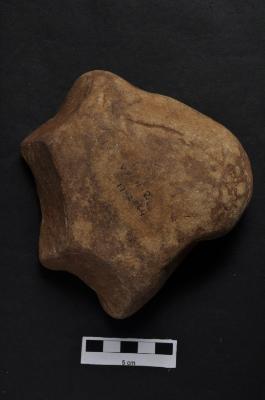 | Description / विवरण | Core, with flake scars at one end, cortex visible on surface. |