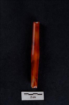 | Description / विवरण | Tubular bi-conical shaped bead, circular cross-section, smooth polished surface, with perforation. |