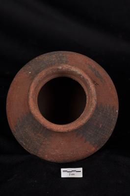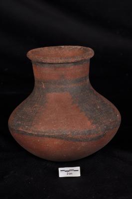 | Description / विवरण | A globular pot having high neck, beveled rim, round base, black colour painting on outer surface. |