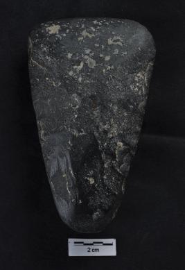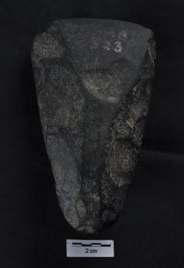 | Description / विवरण | Stone Axe, pointed butt end, straight working edge, smooth surface, few flaking on surface. |
