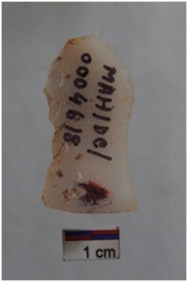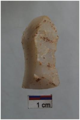 | Description / विवरण | Blade, diffused bulb with striking platform at proximal end, a ridge on dorsal surface, use-ware marks on both working edges. |