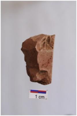 | Description / विवरण | Flake, prominent bulb with striking platform at proximal end, a ridge on dorsal surface. |