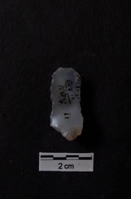 | Description / विवरण | Blade, parallel sided, prominent bulb on ventral surface, use-ware marks on both working edges. |