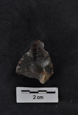 | Description / विवरण | Flake, diffused bulb on ventral side of surface, striking platform visible. |