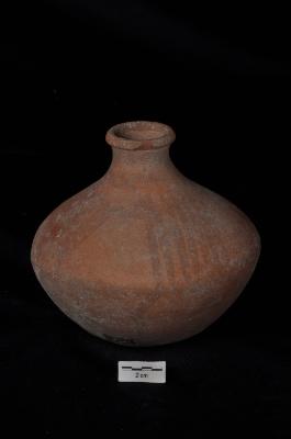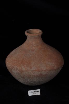 | Description / विवरण | A small flagon with a squat bulging body narrow mouth & a slightly out curved painted rim |