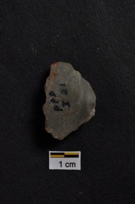| Description / विवरण | Triangular shaped flake, prominent bulb with striking platform visible at proximal end. |