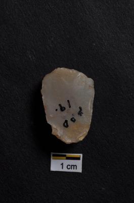 | Description / विवरण | Utilized flake, oval shape, use-ware marks on working edge. |