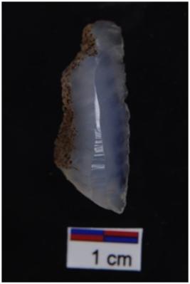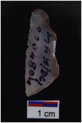 | Description / विवरण | Utilize flake, a ridge on dorsal surface, use wear marks on both edges, some part of cortex visible on dorsal surface. |