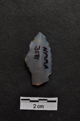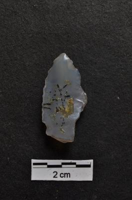| Description / विवरण | Pointed utilized flake, a ridge on dorsal surface, use-ware marks on edges. |