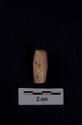 | Description / विवरण | A barrel shaped bead, circular cross-section, with perforation, smooth polished surface. |