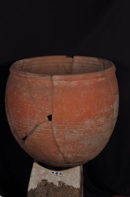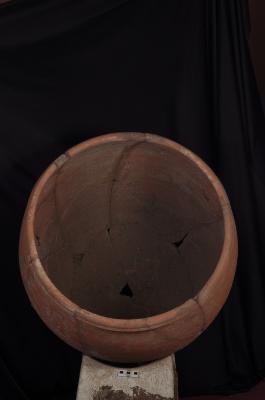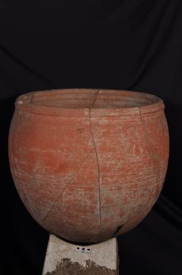 | Description / विवरण | A large Storage Jar with convex sides and a tapering base. It has wide mouth with beaded rim. The inner surface below the rim portion consists of series of horizontal grooving. Probably it had a stand below as it cannot stand itself. |