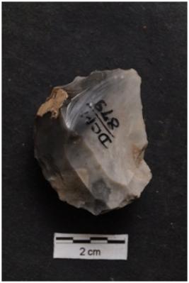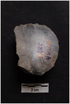 | Description / विवरण | Scraper with convex working edge, bulbous ventral surface, retouches on working edge. |