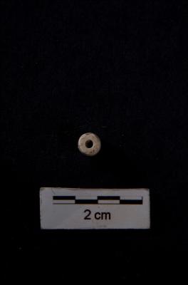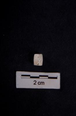 | Description / विवरण | A tubular shaped shell bead, circular cross-section, smooth polished surface, with perforation. |