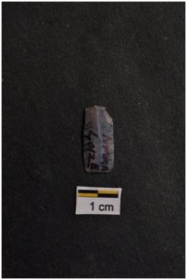 | Description / विवरण | Blade, parallel sided, a ridge on dorsal surface, use-ware marks on both working edges. |