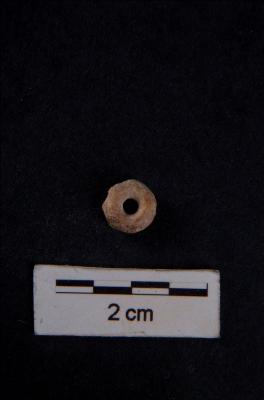 | Description / विवरण | A short bi-conical shell bead, circular cross-section, with perforation, smooth polished surface. |