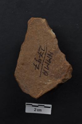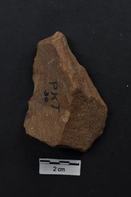| Description / विवरण | Flake, roughly triangular in shape, a ridge on dorsal surface. |