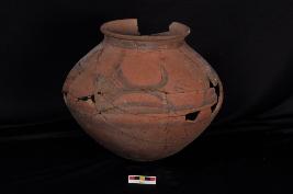 | Description / विवरण | A large pot having squat shape. It is painted. |