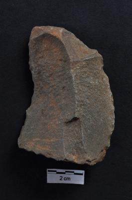| Description / विवरण | Flake, prominent bulb with striking platform visible, a ridge on dorsal surface. |