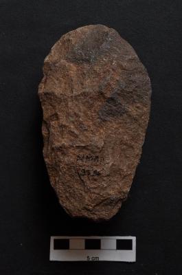 | Description / विवरण | Ovate Handaxe, bifacial, retouches along the periphery. |