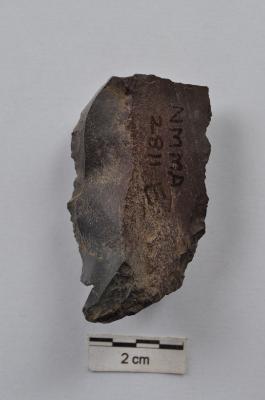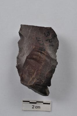 | Description / विवरण | Flake, irregular shape, use-ware marks on both edges, a ridge on dorsal surface, ripples marks visible on ventral surface. |