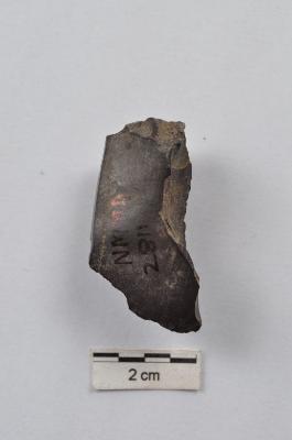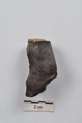 | Description / विवरण | Flake, unprepared striking platform visible, a ridge on dorsal surface. |