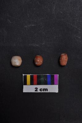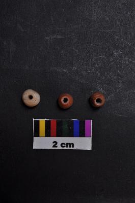 | Description / विवरण | A Shell bead, standard bi-conical shape, oval cross-section, with perforation. |