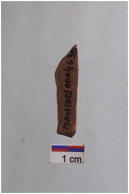 | Description / विवरण | Blade, parallel sided, a ridge on dorsal surface, use-ware marks on both working edges. |