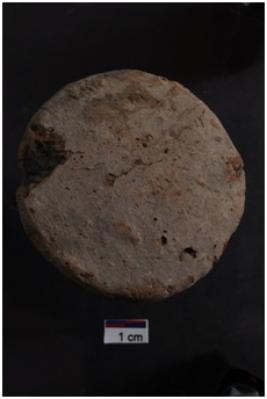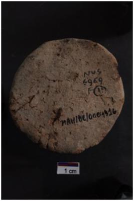 | Description / विवरण | Terracotta object of circular outline shaped cake, red in colour, medium coarse fabric, medium fired, abarded surface. |