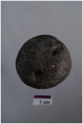 | Description / विवरण | Spindle whorl having to perforation on top |