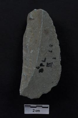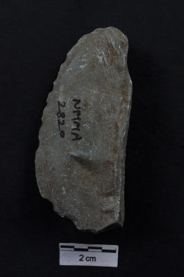 | Description / विवरण | Knife with one straight and another convex edge, use ware marks on convex working edge, a ridge on ventral surface. |