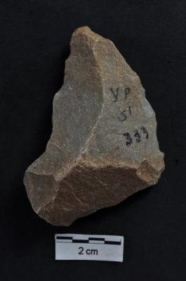 | Description / विवरण | Flake, roughly crescent shaped, diffused bulb on ventral surface, cortex visible on dorsal surface. |
