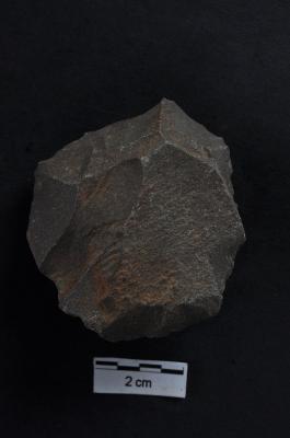 | Description / विवरण | Flake, roughly crescent shaped, diffused bulb on ventral surface, cortex visible on dorsal surface. |
