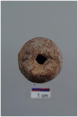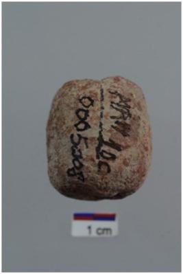 | Description / विवरण | Barrel shape bead, red ware, well-baked, medium coarse fabric. |