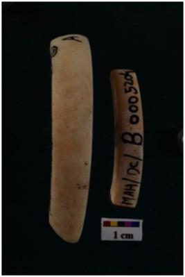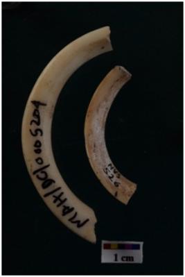 | Description / विवरण | A thick shell material bangle broken bangle 2 fragment. Rectangular cross section and powdery surface. |