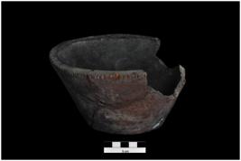 | Description / विवरण | A basin with flaring sides, flat base and a flattened rim which is decorated with cut marks on the outer margin. |