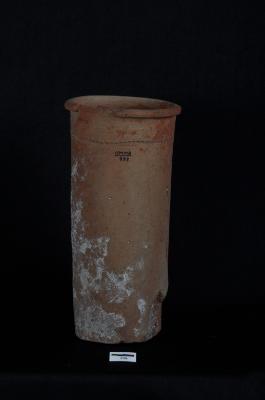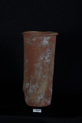 | Description / विवरण | Cylindrical jar of coarse red ware, incised design around neck. |